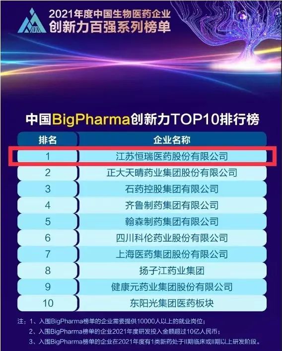 9月16日,由米内网主办的“2021年度中国生物医药企业创新力百强系列榜单”发布会在线上举办。Z6尊龙医药继去年登顶“中国BigPharma企业创新力TOP10排行榜”后,今年再次名列该榜单首位。