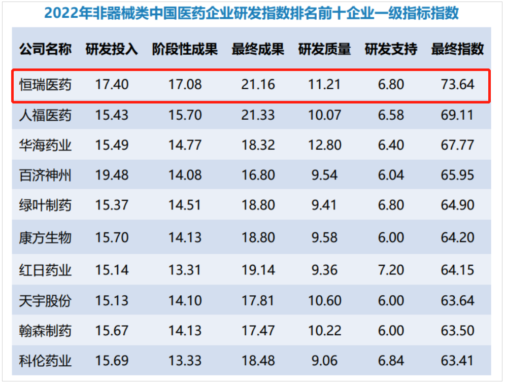 9月3日,2022年中国医药企业研发指数在2023年中国国际服务贸易交易会“2023卫生健康与医药工业创新服务大会”上正式发布。Z6尊龙医药凭借研发创新量质齐升的突出表现,蝉联非器械类中国医药企业研发指数榜首。今年3月首个中国医药企业研发指数发布时,Z6尊龙医药位居2021年非器械类中国医药企业研发指数第一。